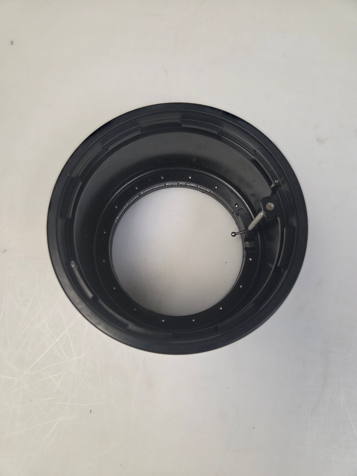 The Nauticam Extension Ring 70 with Lock is part of the N120 Port System and can be used to add 70mm effective length to an N120 Port setup.